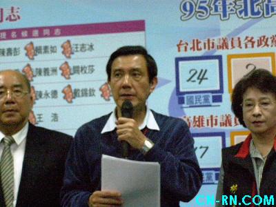 中國臺灣網12月9日消息 據臺媒報道,臺北高雄市長選舉結果今晚揭曉,國民黨主席馬英九在吳伯雄等多位國民黨副主席的陪同下舉行記者會,發(fā)表對選舉結果的談話。