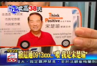 據(jù)報(bào)道,除了“掃街”拜票,宋楚瑜還有一招接觸選民的新方法,就是開通一部“宋楚瑜熱線”。宋楚瑜手機(jī)號(hào)碼就非常大方地印在他的競選文宣上;如果民眾有什么需求,只要撥通這個(gè)號(hào)碼,就有機(jī)會(huì)和宋楚瑜講話;即使宋楚瑜不在競選行動(dòng)車上也沒關(guān)系,還有一位專屬行動(dòng)秘書會(huì)先代替他傾聽選民的心聲。