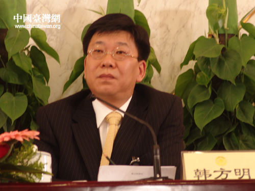 新階層人士韓方明出席全國政協十一屆一次會議記者招待會 中國臺灣網3月8日北京消息 今天下午,人民大會堂召開了全國政協十一屆一次會議記者招待會。會議主題為“新階層人士談社會責任”。作為新階層人士的全國政協委員韓方明出席了記者招待會,并回答了記者關于兩岸的專業人士交流的提問。