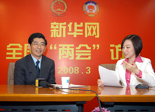2008年3月3日17時,全國人大代表、無錫市市長毛小平談“科學發展新實踐”。圖為毛小平作客新華網。新華網 張泳攝