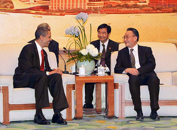 吳邦國請奧巴馬轉(zhuǎn)達(dá)他對美國副總統(tǒng)兼參議院議長拜登和國會(huì)眾議長佩洛西的問候。奧巴馬也轉(zhuǎn)達(dá)了拜登和佩洛西對吳邦國的問候。