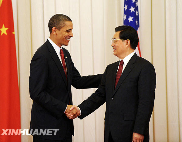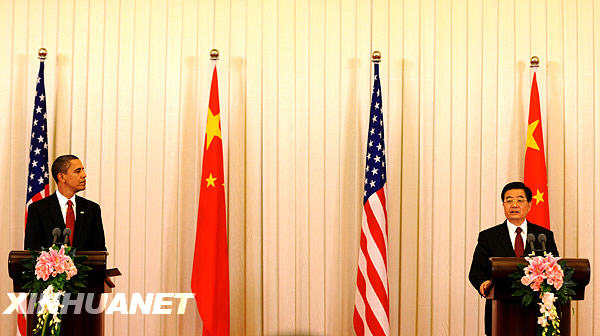 11月17日,中國國家主席胡錦濤和美國總統奧巴馬在北京人民大會堂共同會見中外記者。新華社記者李學仁攝