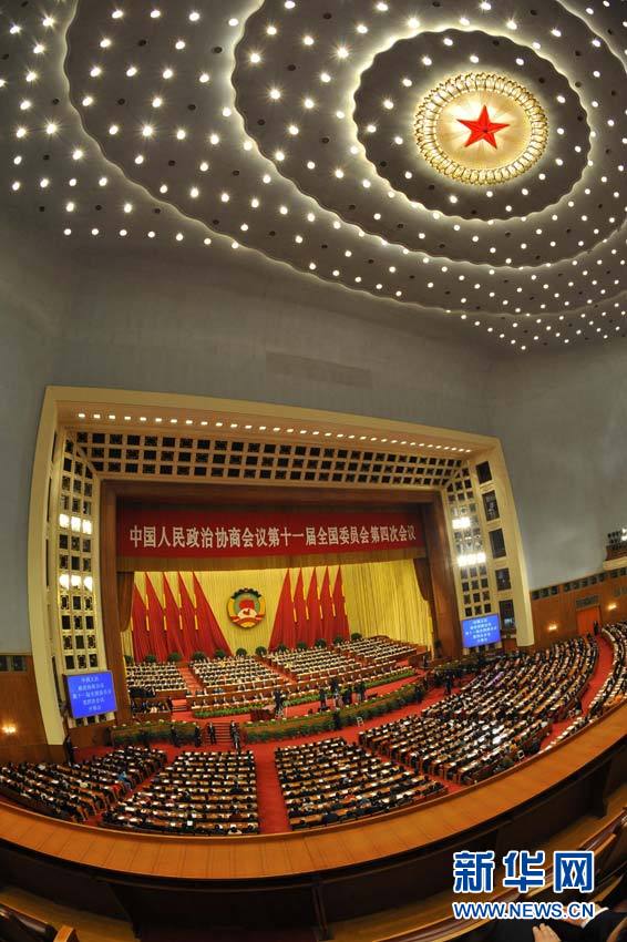 3月3日,中國人民政治協商會議第十一屆全國委員會第四次會議在北京人民大會堂開幕。 新華社記者王曄攝