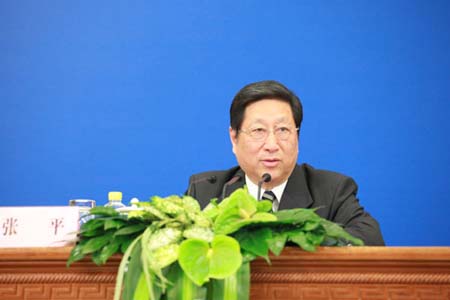 2011年3月6日,國(guó)家發(fā)展和改革委員會(huì)主任張平,國(guó)家發(fā)展和改革委員會(huì)副主任朱之鑫、徐憲平,談關(guān)于“十二五”規(guī)劃綱要,并答記者問(wèn)。圖為國(guó)家發(fā)展和改革委員會(huì)主任張平。吳莼 攝