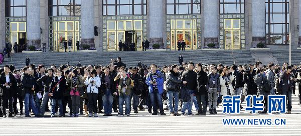 3月3日,中國人民政治協(xié)商會議第十一屆全國委員會第四次會議在北京人民大會堂開幕。國內(nèi)外記者云集北京采訪。 新華社記者 任勇 攝