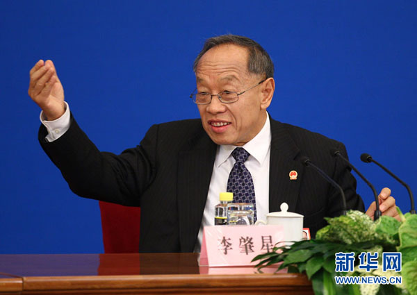 3月4日,十一屆全國人大四次會議在北京人民大會堂舉行新聞發布會。大會發言人李肇星介紹本次會議的有關情況,并回答中外記者的提問。新華社記者陳建力攝