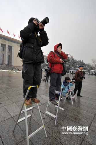 中國臺灣網3月9日消息 3月8日一大早,一場不期而至的大雪給正在召開的兩會增添了不少出行上的困難,但還是有很多記者一大早就趕到了人民大會堂采訪十一屆全國人大第三次會議召開的第二次全會。(記者 肖春陽、劉洋)