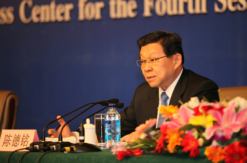 商務部部長陳德銘回答記者提問。 (記者宋玥璘 劉洋 閆文 攝)