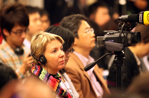 記者會吸引了外國記者的關注。(記者宋玥璘 劉洋 閆文 攝)
