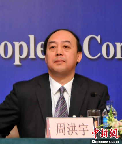 十一屆全國人大四次會議新聞中心3月11日上午在梅地亞多功能廳舉行記者會。圖為湖北省人大常委會副主任、民進中央常委、湖北省主委周洪宇回答記者提問。中新網記者 鄧永勝 攝