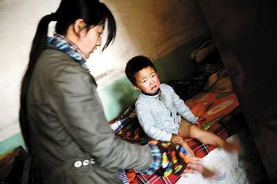 山西,食用三鹿奶粉患有腎病的孩子(資料圖片)。羊城晚報記者 何奔 攝