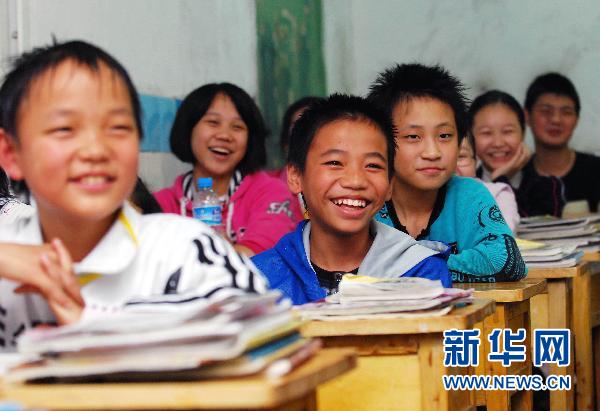 2010年11月11日,重慶渝北第二實驗中學初一(14)班的學生在課堂上。該校從2010年開始招收農民工子女后,采取隨機混合編班等措施,讓農民工子女從環境和心理上自然融入城區學生當中。新華社發(阮藐藐 攝)