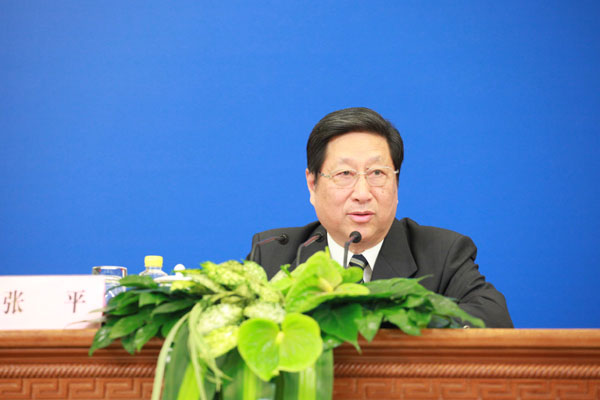 2011年3月6日,國家發(fā)展和改革委員會主任張平,國家發(fā)展和改革委員會副主任朱之鑫、徐憲平,談關(guān)于“十二五”規(guī)劃綱要,并答記者問。圖為國家發(fā)展和改革委員會主任張平。吳莼 攝