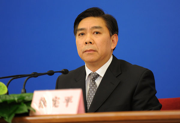 2011年3月6日,國家發展和改革委員會主任張平,國家發展和改革委員會副主任朱之鑫、徐憲平,談關于“十二五”規劃綱要,并答記者問。圖為國家發展和改革委員會副主任徐憲平。翟子赫 攝