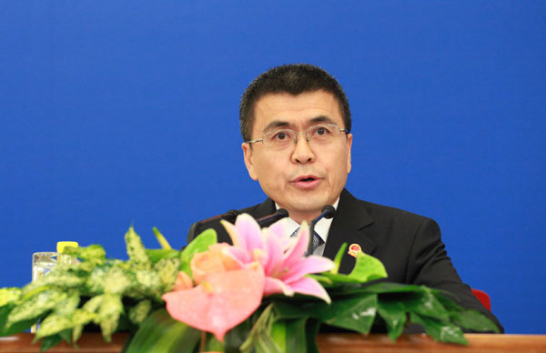 3月7日上午10點(diǎn),十一屆全國人大四次會(huì)議在人民大會(huì)堂三樓大廳舉行中外記者會(huì),由外交部部長楊潔篪就外交政策和對(duì)外關(guān)系問題答記者問。圖為全國人大常委會(huì)副秘書長、記者會(huì)主持人曹衛(wèi)洲。 吳莼攝