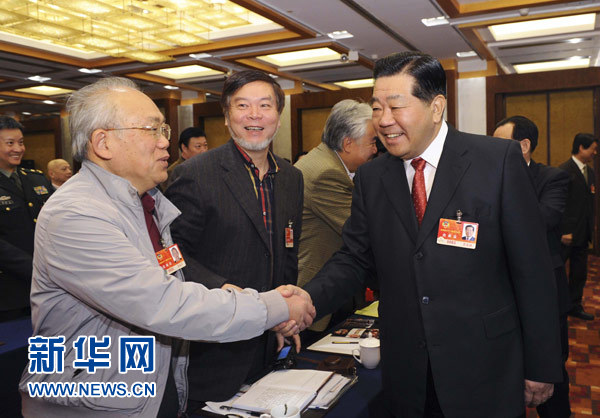 3月8日,中共中央政治局常委、全國政協(xié)主席賈慶林參加全國政協(xié)十一屆四次會議文藝界委員討論。 新華社記者 饒愛民攝