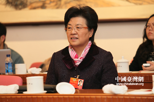 全國政協委員田淑蘭在小組議論會上發言。(中國臺灣網發)