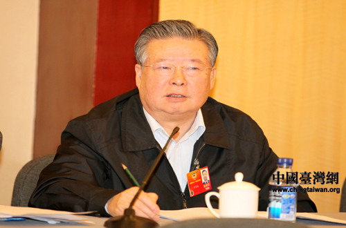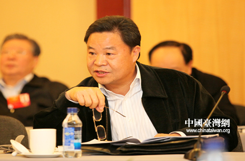 全國政協(xié)委員、中國人民對外友好協(xié)會會長陳昊蘇主持小組討論。(中國臺灣網(wǎng)發(fā))