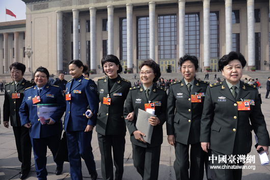 來自軍隊的部分女政協委員滿懷豪情、走向未來。(中國臺灣網 發)