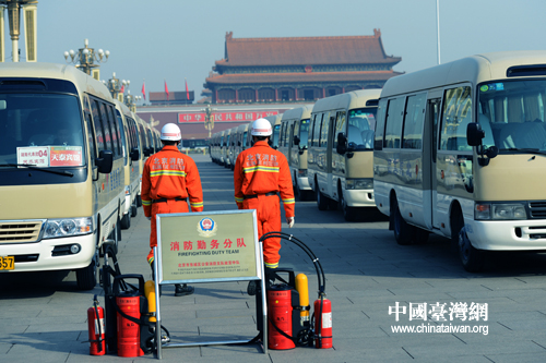 中國臺灣網(wǎng)3月9日北京消息 全國“兩會”期間,在天安門廣場看到,一輛輛排列整齊的大巴車穿著耀眼的金色外衣雄赳赳、氣昂昂地整裝待發(fā),象列隊等待檢閱的士兵一般威武。記者登上一輛大巴車,看到座套全部是新?lián)Q的,整輛車打掃得一塵不染,車廂內(nèi)還能聞到淡淡的水果香味,暖暖的陽光透過車窗照進來,一切都顯得那么溫馨。司機劉德清師傅告訴記者,他是北京出租汽車旅游客運分公司的一名司機,接到保障兩會的任務(wù)后,他多次對車輛進行維護保養(yǎng),里里外外把車擦了好幾遍。