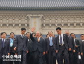 吳伯雄在中山陵前揮手向現(xiàn)場(chǎng)的歡迎的民眾致意]]>