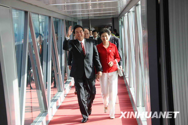 11月7日,海協(xié)會會長陳云林一行結束訪臺行程,于13時50分許乘機回到北京。新華社記者 汪永基 攝