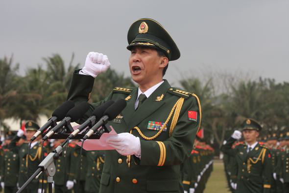 武警海口支隊(duì)支隊(duì)長領(lǐng)誓。 圖片來源:人民武警報(bào)