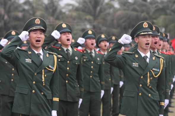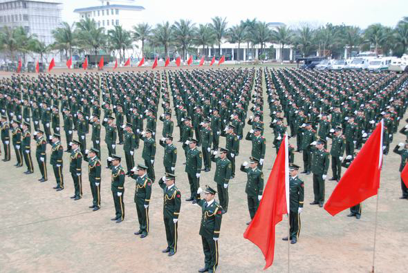 出征動(dòng)員誓師大會(huì)上,“我們是特區(qū)衛(wèi)士,我們是椰島利劍。擔(dān)負(fù)博鰲勤務(wù),使命光榮,責(zé)任重大。我們宣誓:牢記職責(zé),不辱使命;不畏艱難,勇挑重?fù)?dān);文明執(zhí)勤,展示形象;眾志成城,再創(chuàng)佳績;為偉大祖國爭光,為武警部隊(duì)添彩!”……一句句錚錚誓言在主會(huì)場(chǎng)和各分會(huì)場(chǎng)上空激蕩,盡顯出武警官兵打贏博鰲論壇2011年年會(huì)安保之戰(zhàn)的必勝?zèng)Q心和信心,確保盛會(huì)平安,捍衛(wèi)國家尊嚴(yán),展示中國武警良好形象,以優(yōu)異成績接受黨和人民檢閱。