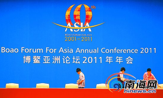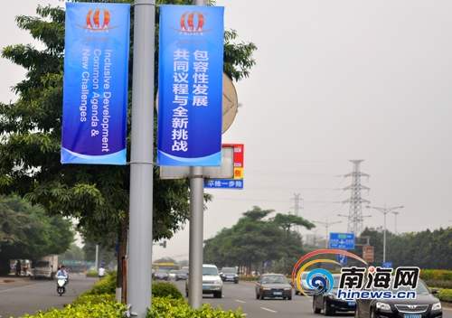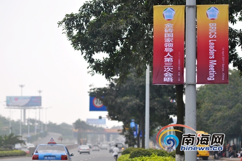 2011博鰲亞洲論壇年會(huì)和金磚國(guó)家領(lǐng)導(dǎo)人第三次會(huì)晤即將在海南省舉行。6日上午,為迎接盛會(huì)的召開(kāi)及來(lái)自世界各地的嘉賓,海口的龍昆路、海府路、國(guó)興大道等主要路段均已掛上標(biāo)語(yǔ)、橫幅等營(yíng)造盛會(huì)氣氛。