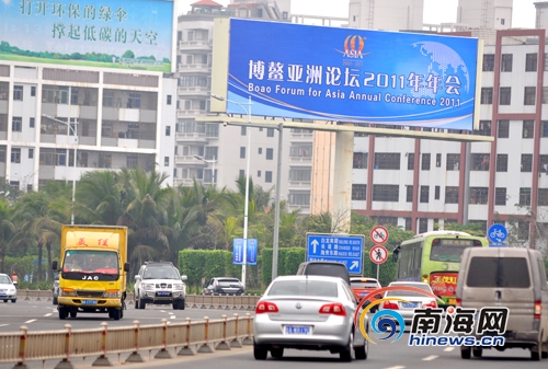 豎立在海南省海口市海府路的大廣告牌提示人們,離2011年博鰲亞洲論壇的日期越來(lái)越近。南海網(wǎng)見(jiàn)習(xí)記者 秦彥 攝