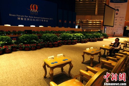 4月13日,博鰲亞洲論壇大會在海南博鰲準備就緒。4月14至16日,博鰲亞洲論壇2011年年會將在此舉行,今年年會的主題是“包容性發(fā)展:共同議程與全新挑戰(zhàn)”。中新社發(fā) 張宇 攝