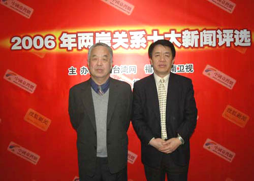 由中國臺灣網、東南衛視主辦,搜狐網協辦的“2006年兩岸關系十大新聞”評選活動于2006年12月15日正式啟動。作為此次活動的重要組成部分,臺灣問題專家郭震遠(左)、劉紅(右)在線接受訪談。