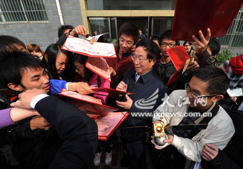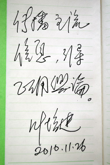 隨后,葉培建院士為本報欣然題詞——“傳播主流信息,引導正確輿論”。此時,陪同葉培建來昌講學的“嫦娥二號”衛星副總設計師、江西籍老鄉饒煒也為本報題詞——祝家鄉《信息日報》越辦越好!