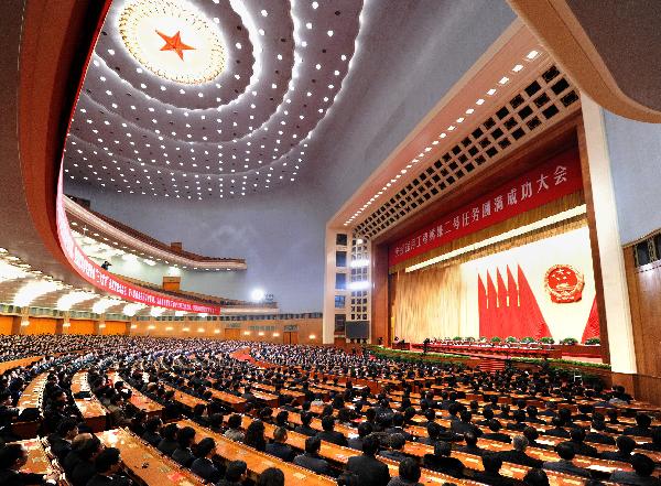 12月20日,中共中央、國務(wù)院、中央軍委在北京人民大會(huì)堂舉行大會(huì),隆重慶祝我國探月工程嫦娥二號(hào)任務(wù)圓滿成功。這是大會(huì)會(huì)場。新華社記者劉建生攝