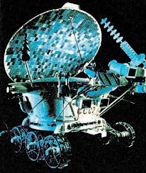 圖5.1970年11月10日,月球17號載著世界上第一輛自動月球車上天。17日在月面雨海著陸后,月球車1號下到月面進行了10個半月的科學考察。這輛月球車重756千克,長2.2米,寬1.6米,裝有電視攝像機和核能源裝置。它在月球上行程10540米,考察了8千平方米月面地域,拍攝了200幅月球全景照片和20000多張月面照片,直到1971年10月4日核能耗盡才停止工作。