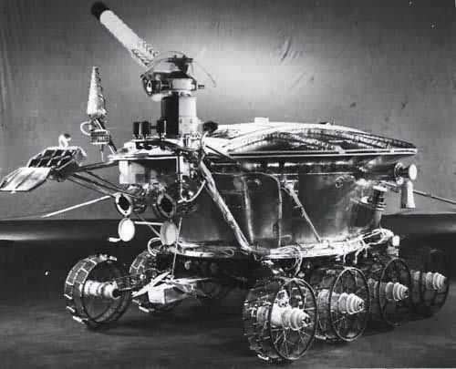 圖5.1970年11月10日,月球17號載著世界上第一輛自動月球車上天。17日在月面雨海著陸后,月球車1號下到月面進行了10個半月的科學考察。這輛月球車重756千克,長2.2米,寬1.6米,裝有電視攝像機和核能源裝置。它在月球上行程10540米,考察了8千平方米月面地域,拍攝了200幅月球全景照片和20000多張月面照片,直到1971年10月4日核能耗盡才停止工作。
