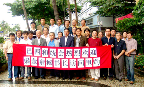 梁金泉指出,巴西的華人華僑心系祖國的統一事業,做了大量的工作,很多感人的事跡,令人敬佩。實現中國的和平統一,是所有中華兒女的共同心愿,我們要通過交往,加強聯系,聯絡感情,強化對中華民族共同文化和傳統的共識。希望華人華僑社團加強自身建設和發展,加強團結,多溝通,與中國和平統一促進會加強聯系,把我們的事業不斷推向前進。