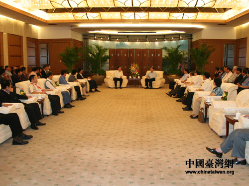 邢元敏在天津迎賓館會見了中國和平統一促進會考察團。攝影 趙穎芳