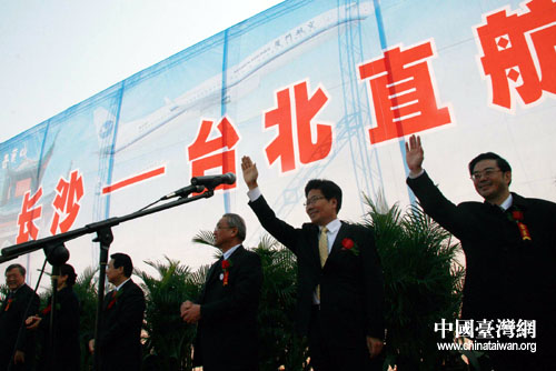 2009年1月,“長沙-臺北”空中直航開通,圖為首航儀式現場(資料圖片)