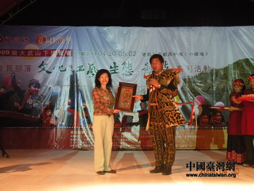 來義鄉鄉長致贈原住民工藝精品圖片來源:四川臺辦