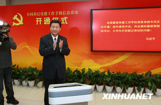 1月5日,中共中央政治局常委、中央書記處書記、國家副主席習近平在北京出席全國基層黨建工作手機信息系統開通儀式。新華社記者 龐興雷 攝