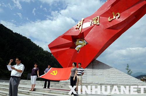 6月30日,江西省井岡山市廈坪鎮(zhèn)基層黨員干部在井岡紅旗雕塑下宣誓,重溫入黨誓詞。“七一”來臨之際,前來江西井岡山祭奠革命先烈的黨員干部絡(luò)繹不絕。他們重溫入黨誓詞,學(xué)習(xí)井岡山精神,迎接黨的89歲生日。新華社記者 馬平攝