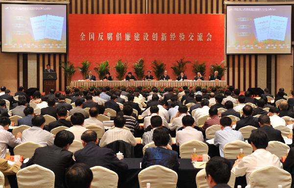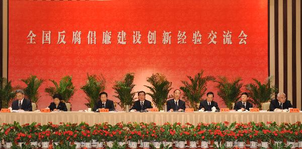 5月18日,中央紀(jì)委監(jiān)察部在南京市召開全國反腐倡廉建設(shè)創(chuàng)新經(jīng)驗(yàn)交流會(huì),中共中央政治局常委、中央紀(jì)委書記賀國強(qiáng)出席會(huì)議并講話! ⌒氯A社記者黃敬文攝