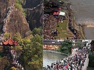 盘点"双节"各地"人海"景观]]>