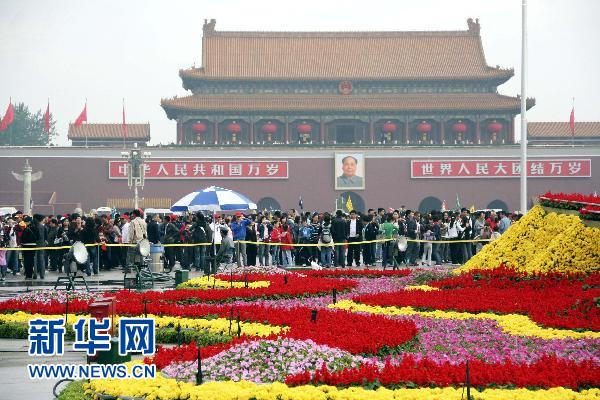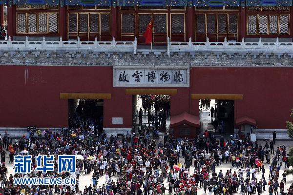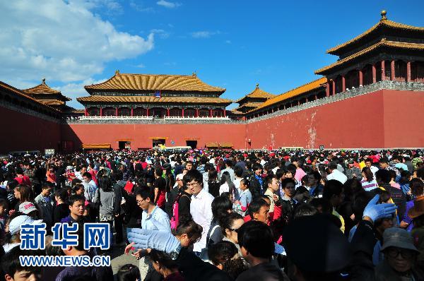 10月2日,北京故宮北門廣場(chǎng)游人如織。新華社發(fā)