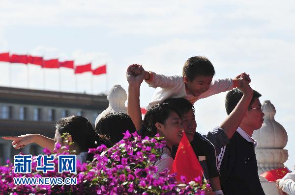 10月2日,游客在北京天安門廣場(chǎng)游覽。新華社發(fā)(樊甲山 攝)