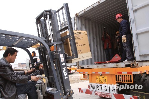 3月30日,天津市水利系統緊急組織的移動發電機、水泵等首批救災物資啟程運往貴州旱區。中新社發 高群 攝
