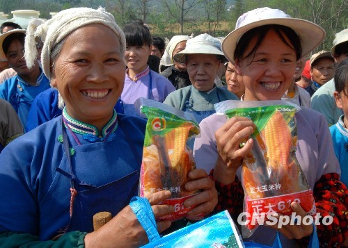 4月12日,在廣西特大干旱縣——那坡縣龍合鄉(xiāng)信合村田間地頭,自治區(qū)農(nóng)業(yè)專家將耐旱高產(chǎn)玉米良種贈送給受災(zāi)的農(nóng)民。當(dāng)日,廣西壯族自治區(qū)農(nóng)業(yè)廳在遭受特大旱災(zāi)的那坡縣和鳳山縣舉辦“抗旱救災(zāi)種子”捐贈儀式,現(xiàn)場將從外省緊急采購回來的總價值48萬元的3萬斤耐旱高產(chǎn)玉米良種,贈送給兩縣遭受嚴(yán)重旱災(zāi)的3000多戶農(nóng)民,幫助他們搶種補(bǔ)種,恢復(fù)生產(chǎn)。中新社發(fā)喻湘泉攝