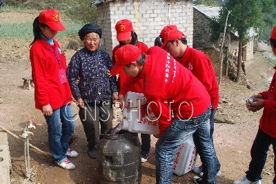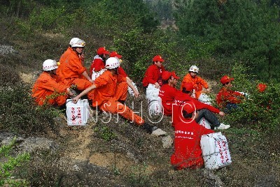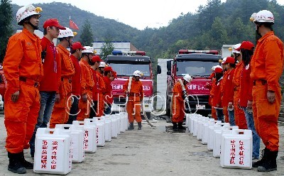 消防官兵“紅水桶”送水抗旱