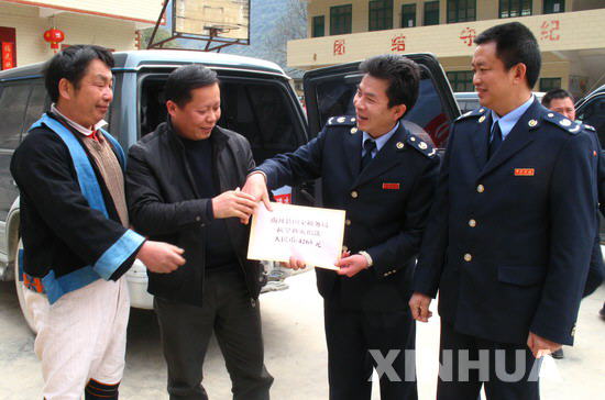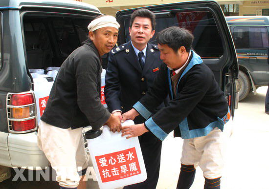 南丹縣國稅局領導給受災瑤族同胞運水